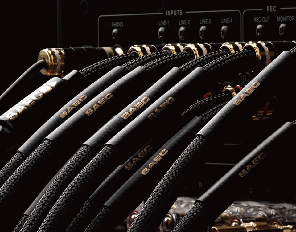 SAEC's history in audio cables began with the production of interconnect cables for phono cartridges, the renowned MC transformers, and phono preamplifiers. The company developed cables with different internal impedance for different cartridge types — an approach that caused a sensation at the time and was first introduced by SAEC. Since then, SAEC has consistently produced cutting−edge cables and maintained a leading position in the Japanese market.